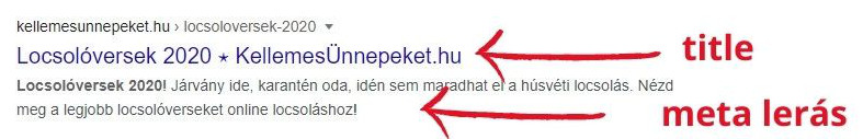A title és a meta leírás a weboldalon nem látszódnak, de a Google találati listájában ezek jelennek meg.